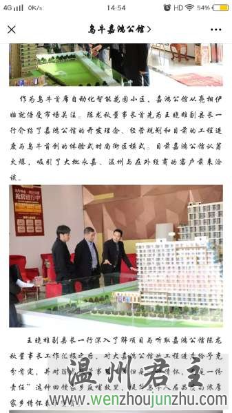 嘉鸿公馆自开盘以来就宣传要建设成智能化小区,时尚街区,花园式洋房,别墅级的筑品,并标榜将以世界级的建筑品质,国际化的居住标准,打造乌牛独一无二的品质住宅,开启乌牛本地生活新纪元。 在各大媒体宣传甚至邀约永嘉县长来现场参观,介绍项目,引来了众多投资者前来投资购买。(资料源于但不限于网络,售楼处现场资料及嘉鸿公馆微信公众号) 可实际交付给业主的与之前的介绍宣传完全不一致,虚假宣传,忽悠人民忽悠党。